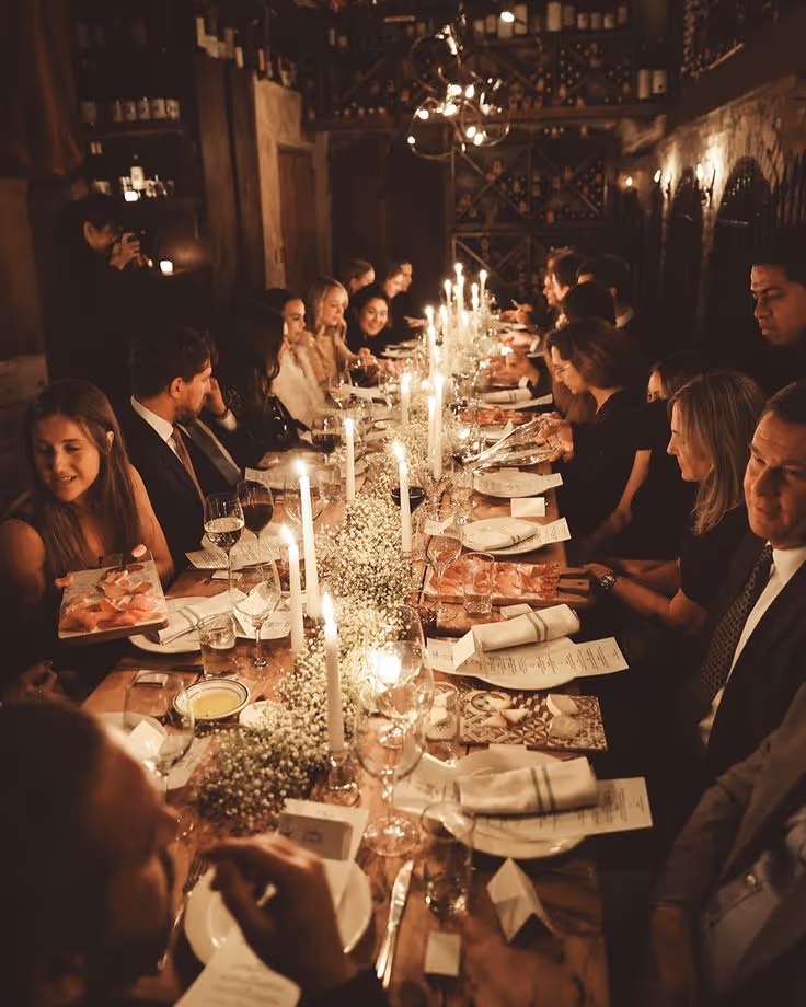 As evening fell, Noor & Daniel hosted a thoughtfully curated dinner reception, bringing their closest friends and family together for an unforgettable night of warmth and quiet celebration. Set beneath the open sky in the same modern courtyard, the space was softly transformed with ambient lighting, floating candles, and understated floral arrangements in soft blush, ivory, and taupe. Long wooden tables were dressed in textured linen, delicate glassware, and gold-accented place settings. The atmosphere was cozy yet refined — with live acoustic music playing gently in the background and the soft murmur of laughter filling the air. Noor changed into a graceful silk ensemble in a muted rose tone, while Daniel opted for a tailored dinner jacket in a deep, elegant hue. The evening flowed with heartfelt toasts, a custom seasonal menu, and spontaneous moments of dancing beneath string lights.